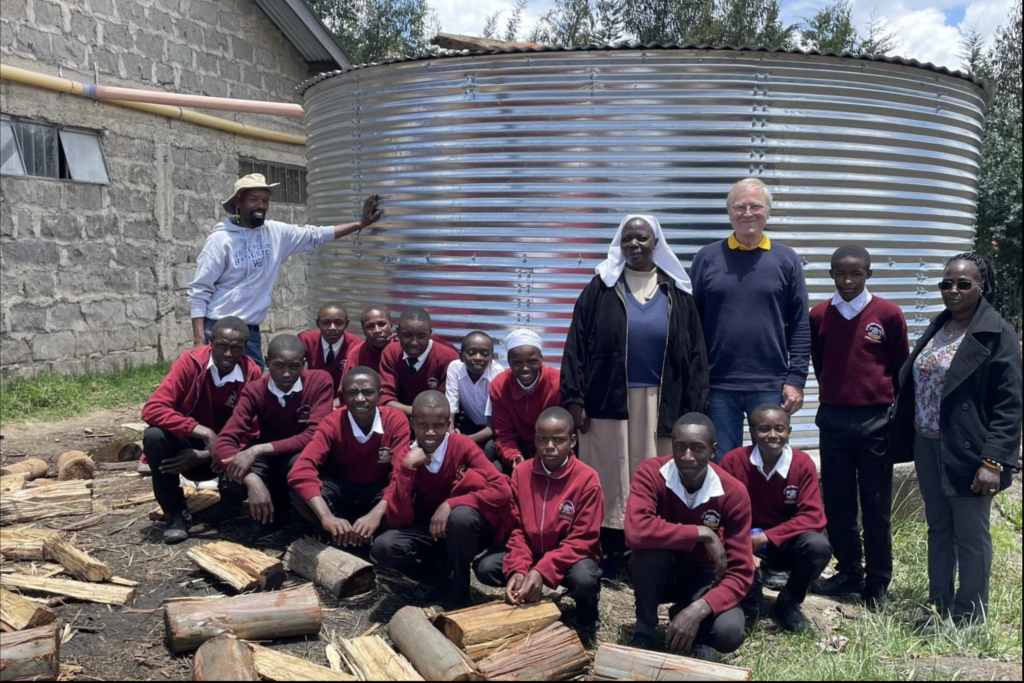 Kenia ist knapp 7-mal größer als Deutschland und repräsentiert nach Nigeria und Südafrika die drittgrößte Wirtschaftsleistung südlich der Sahara. Trotzdem gibt es viel Armut. Seit 2018 besteht zwischen der Peter-August-Böckstiegel-Gesamtschule (P.A.B.) in Werther, Kreis Gütersloh, eine Partnerschaft mit der Gituru Secondary School in der Nähe von Naivasha. Die Schule wurde 1993 von einer Elterninitiative gegründet und ermöglicht Kindern armer Familien eine weiterführende Ausbildung. So wurde etwa mit Unterstützung von Lehrern und Schülern ein Wiederaufforstungsprogramm ins Leben gerufen. Die P.A.B.-Gesamtschule hattedieses Projekt bereits mit mehreren tausend Euro gefördert. Allerdings fehlte ein geeigneter Regenwasserbehälter, um die Bäume in der trockenen Jahreszeit zu bewässern. Die Eine-Welt-Stiftung Rhein-Berg finanzierte diesen 28.000-Liter-Behälter. Neben der Wiederaufforstung werden an der Gituru Secondary School Setzlinge produziert und verkauft; der Erlös kommt Schule und Schülern zugute. Das Projekt wurde vom Verein Himmel un Ääd e. V. der Eine-Welt-Stiftung Rhein-Berg empfohlen.